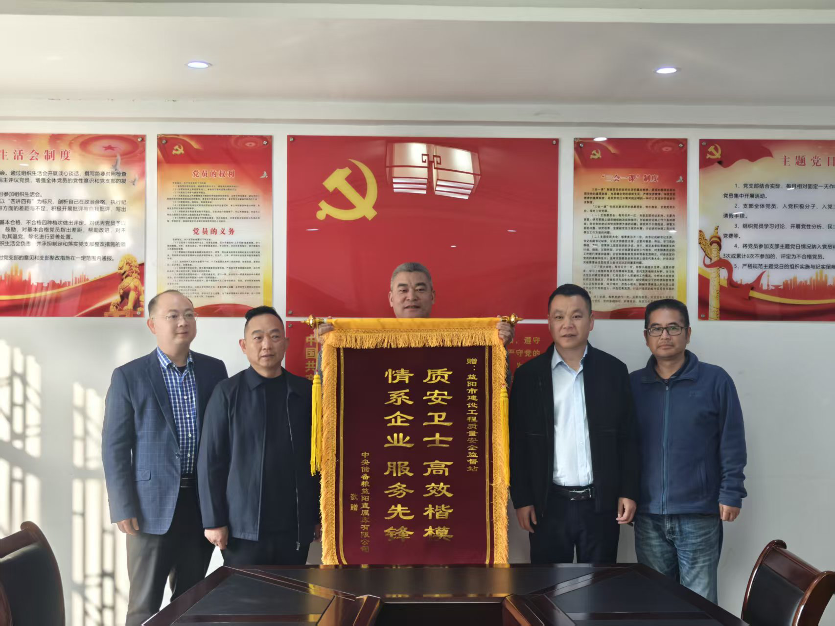 近日,益阳市建设工程质量安全监督站迎来了一份暖心荣誉——某项目单位负责人专程送来一面锦旗,“质安卫士 高效楷模”八个金黄大字,熠熠生辉。这不仅是项目方对市质安监站工作的真诚感谢,更是对全体监督人员专业精神与服务态度的生动褒奖。锦旗背后,凝聚着市质安监站将党建深度融入业务、以实干践行使命的长期坚守。