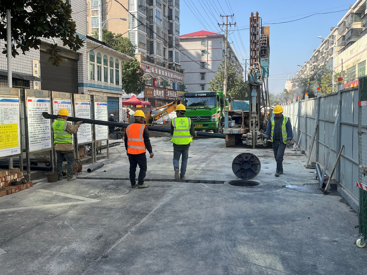 泵站进水渠道深埋滨江路下方,与军缆、燃气、高压电缆等十余种管线“立体交织”,施工面临巨大挑战。项目团队创新采用“浅埋暗挖法”,以“管超前、严注浆、短进尺”为核心原则,分步开挖、即时支护。该工艺虽工期受限、安全风险较高,但可避免传统明挖方式存在的大面积路面开挖、全面中断交通、综合管线无处可迁、周边房屋安全和工地扬尘污染风险等问题。在地下掘进施工最大限度减少对地面交通和周边环境的影响,保障城市正常运行,彰显精细化施工智慧,堪称城市建成区改造的“微创手术”。