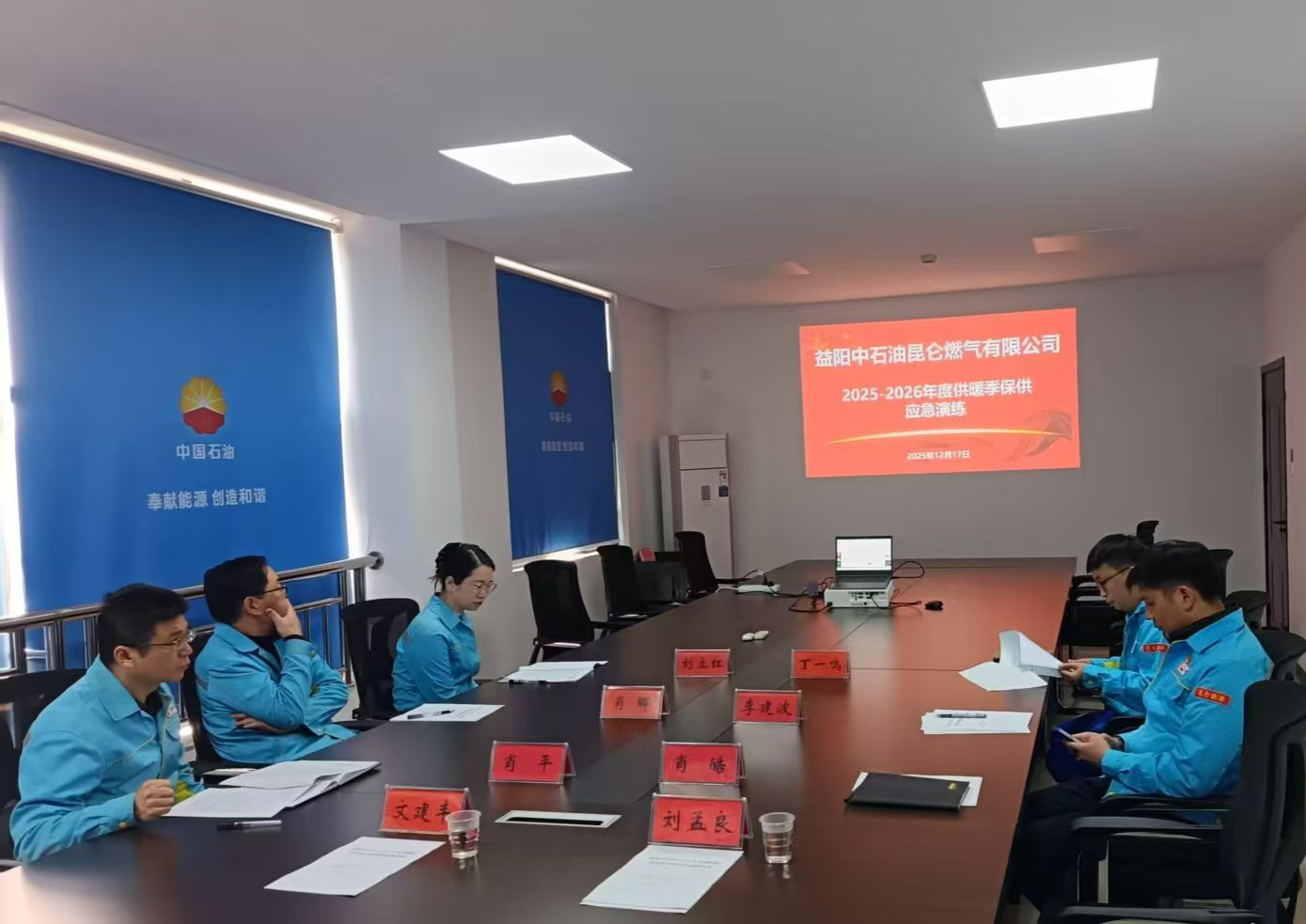 2025年12月17日9时50分,随着益阳中石油昆仑公司党支部书记、董事长、应急保供演练总指挥肖平一声“演练开始”的口令,益阳天晟天然气有限公司、桃江昆仑燃气有限公司参演人员立即进入演练状态,今年冬季应急保供演练正式拉开序幕。本次演练采用视频现场推演的方式,主会场设益阳公司高新区调压站二楼会议室,分会场设桃江门站二楼会议室。