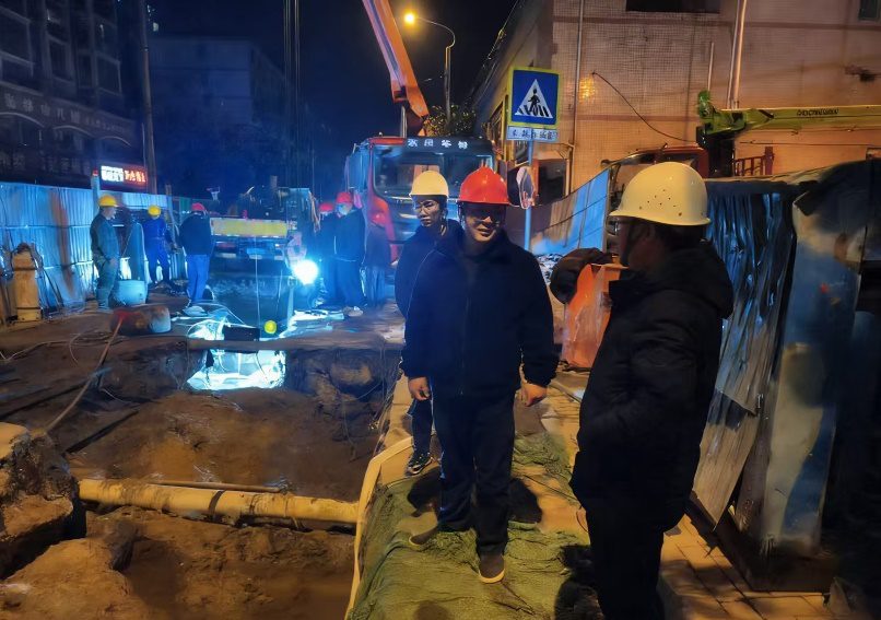 市政府高度重视,副市长罗讯深入地下隧道施工一线,全面了解施工难点,现场调研指导,要求市生态环境局、市蓝天办、市城管执法局、市交管支队及赫山区政府等部门协同联动、全力保障。市住房城乡建设局领导统筹调度,靠前指挥,项目专班驻扎一线,夜晚值守,建立常态化调度推进机制,全力协调解决现场问题。1月7日深夜,自来水管线在探照灯下切割重组,焊工蜷缩在管沟中连续作业4小时。“早1小时完工,隧道就少1天风险!”自来水工程师抹去护目镜上的白霜。至8日清晨,最后一根自来水管成功对接,在寒夜中顺利完成关键节点的迁改任务,为隧道主体掘进赢得了宝贵时间,奠定了安全基础。整个泵站改造现场已转入24小时连续作业模式,全力向汛前目标冲刺。