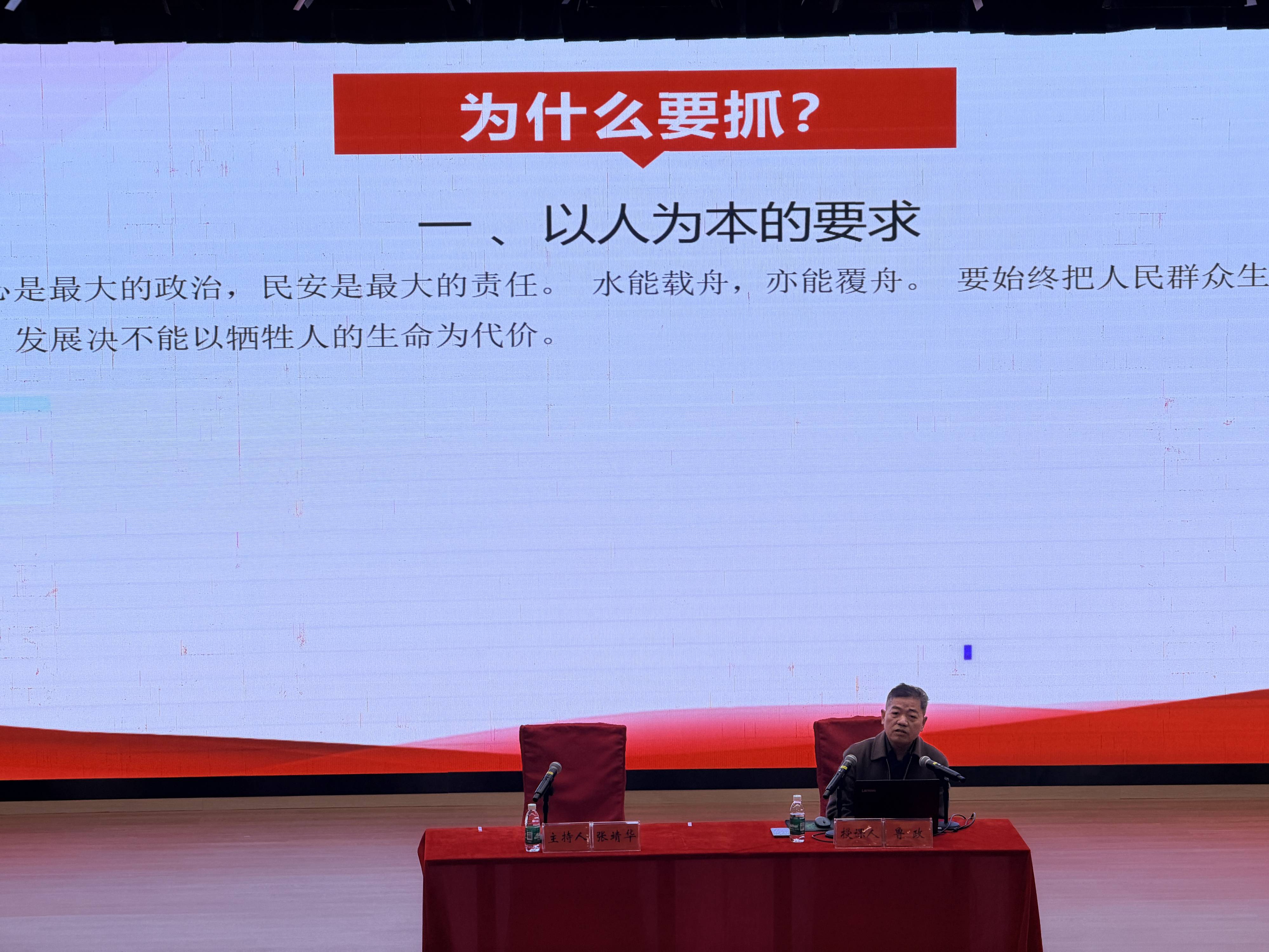下半场,市应急管理局党委委员、副局长鲁政围绕《着力抓好新时期安全生产》进行专题辅导。他从当前安全生产形势出发,结合住建领域特点,系统阐述了如何压实责任、防范风险、提升应急处置能力,既有理论高度,又有实践指导意义。