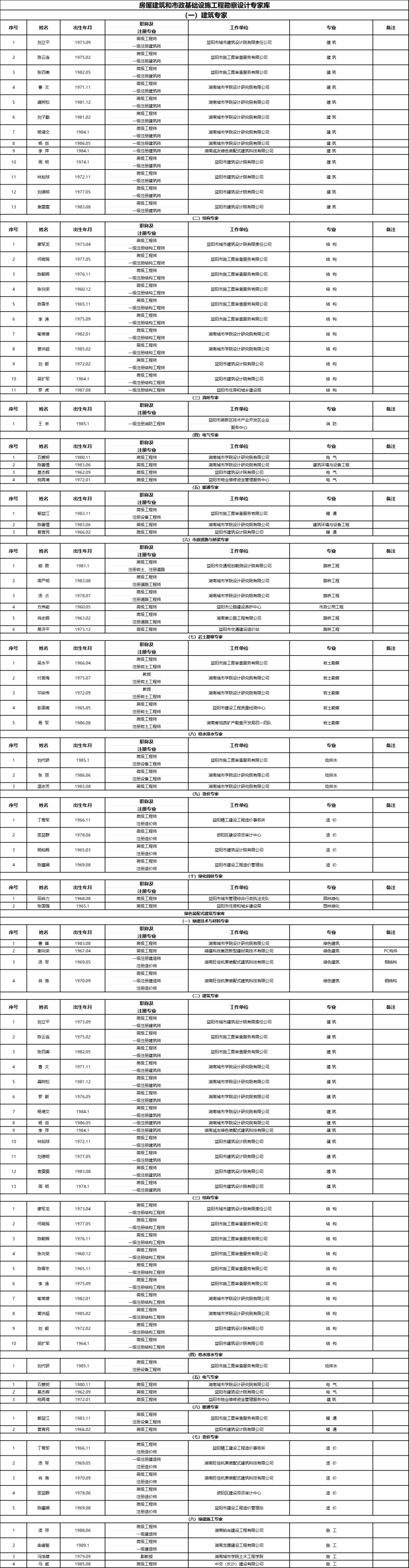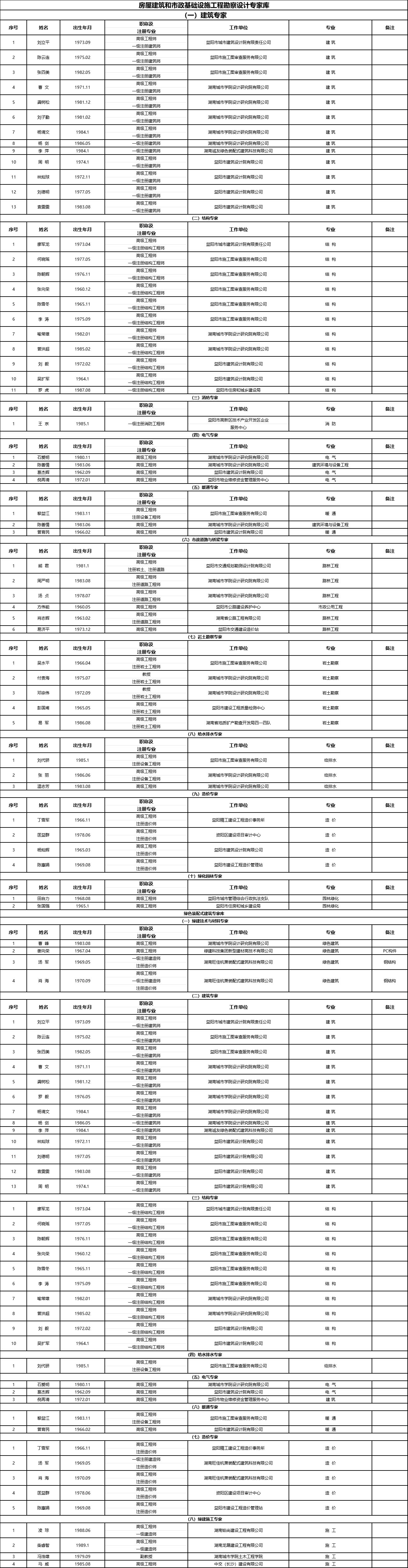 益阳市住房和城乡建设局关于益阳市房屋建筑和市政基础设施工程勘察设计暨绿色装配式建筑专家库入选人员的公示