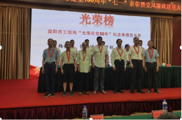 会议在庄严的国歌声中拉开帷幕。全体党员重温入党誓词,欢聚一堂共庆政治生日。会上局党组副书记、副局长唐铁毛同志宣读了益阳市工信局“光荣在党50年”名单和《中共益阳市工业和信息化局机关委员会关于表彰“两优一先”的决定》,并由局党组领导班子为18位50年以上党龄的老同志颁发“光荣在党50年”纪念章,为20余名“两优一先”对象进行了表彰颁奖。“光荣在党50年”老党员代表和“两优一先”代表分别作了典型发言。会议还安排部署了2021年度党风廉政建设工作,市纪委市监委驻市工信局纪检监察组组长庄卫对市工信局党风廉政建设提出纪检监察要求,局党组书记、局长李恩念作了重要讲话。