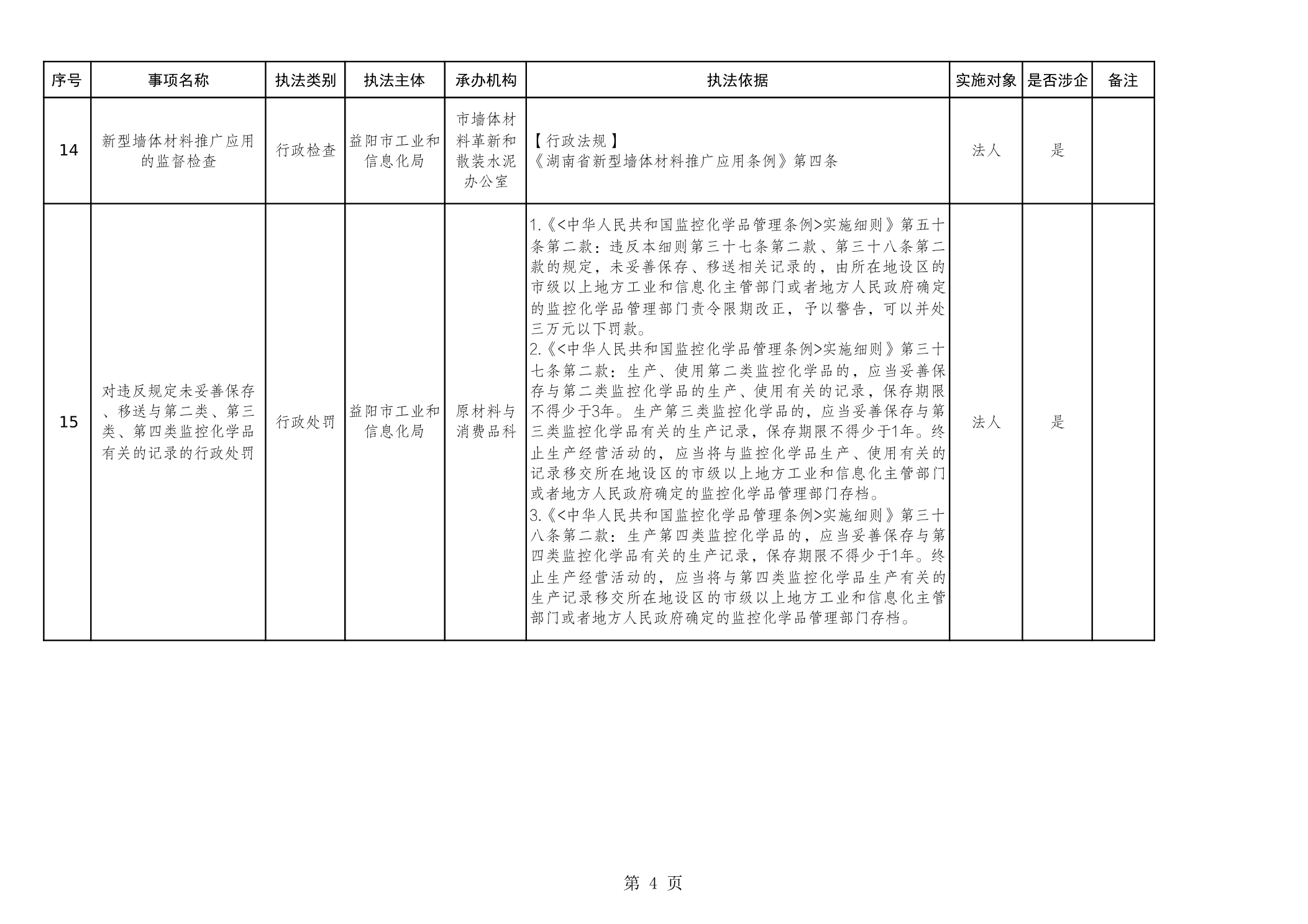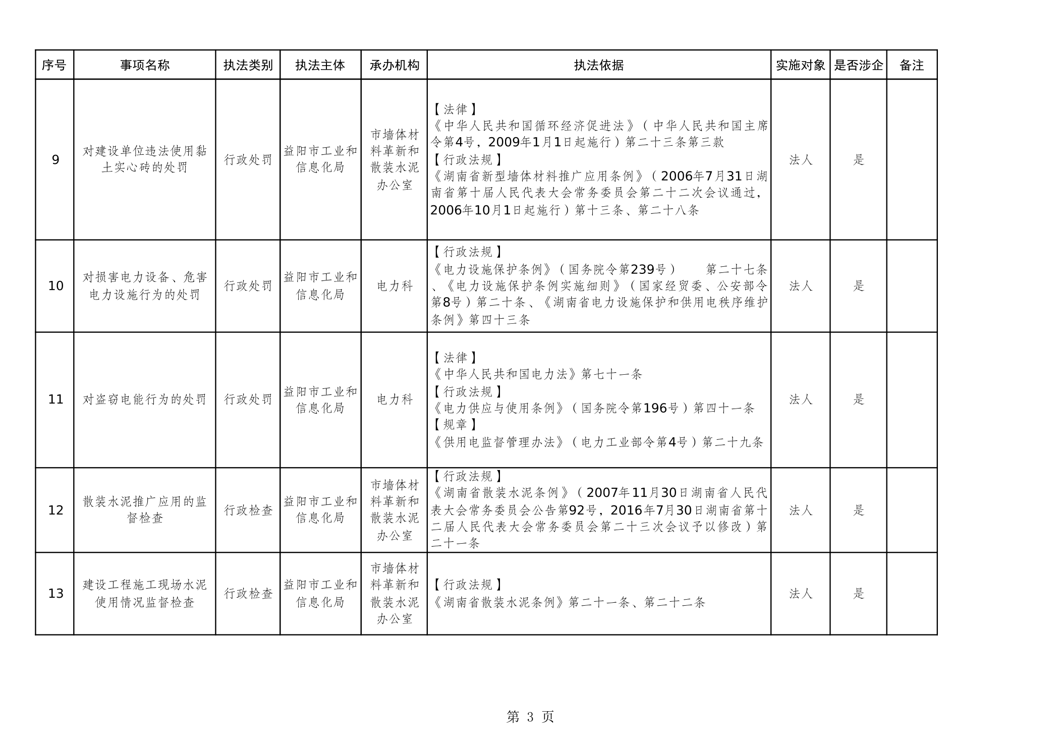 益阳市工业和信息化局行政执法事项清单(2025年)
