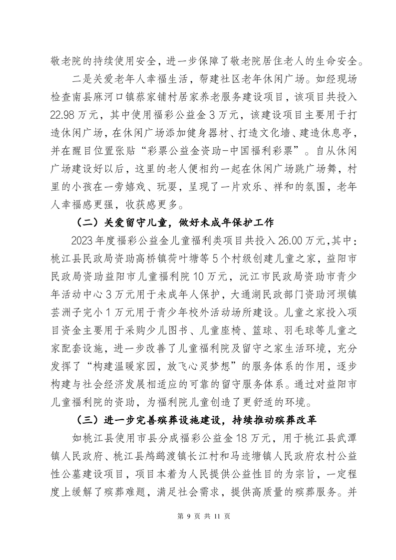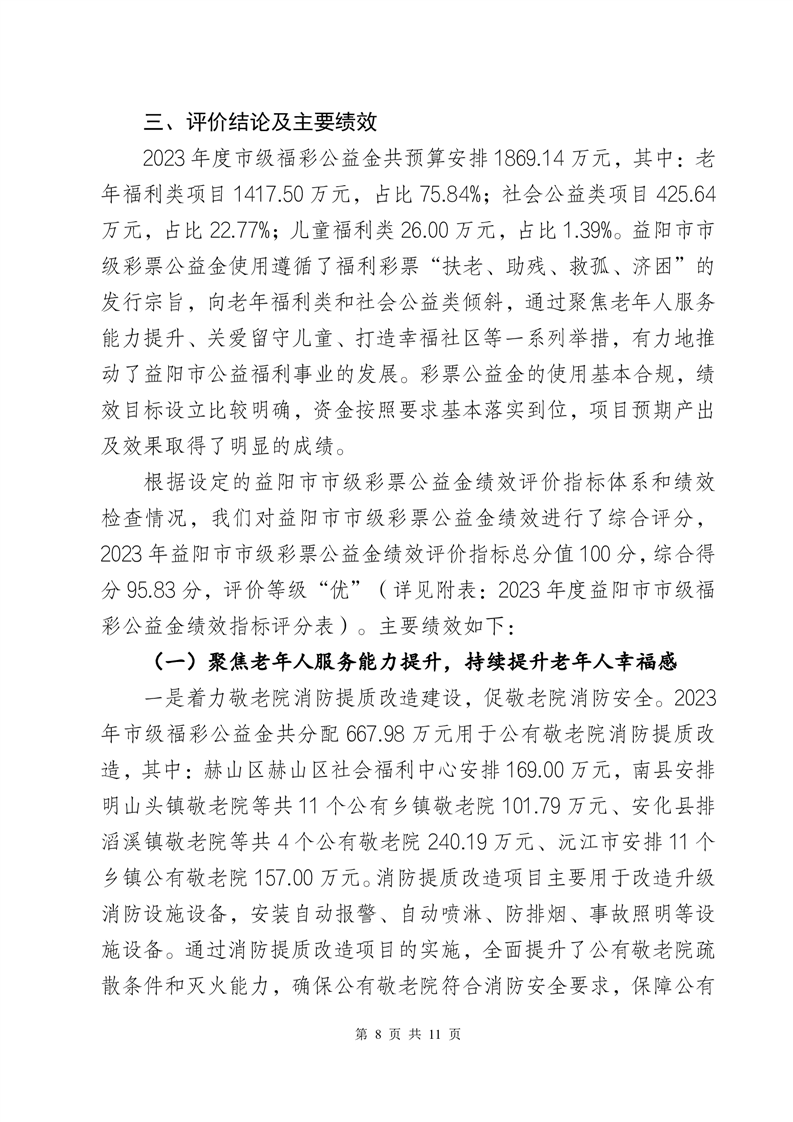 益阳市2023年度市级福彩公益金绩效评价报告