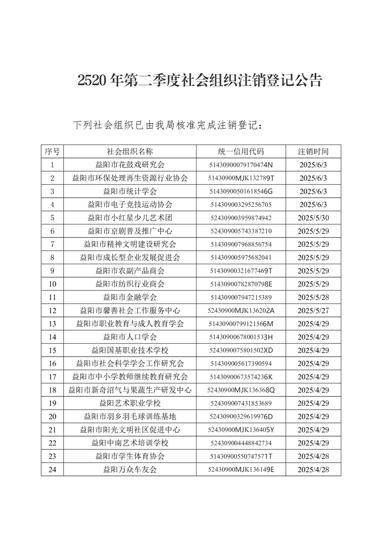 2025年二季度社会组织注销登记公告