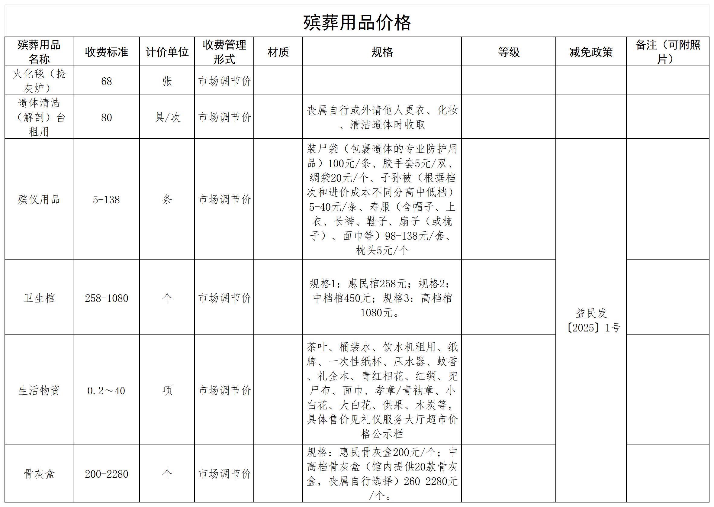 益阳市殡仪馆收费公示