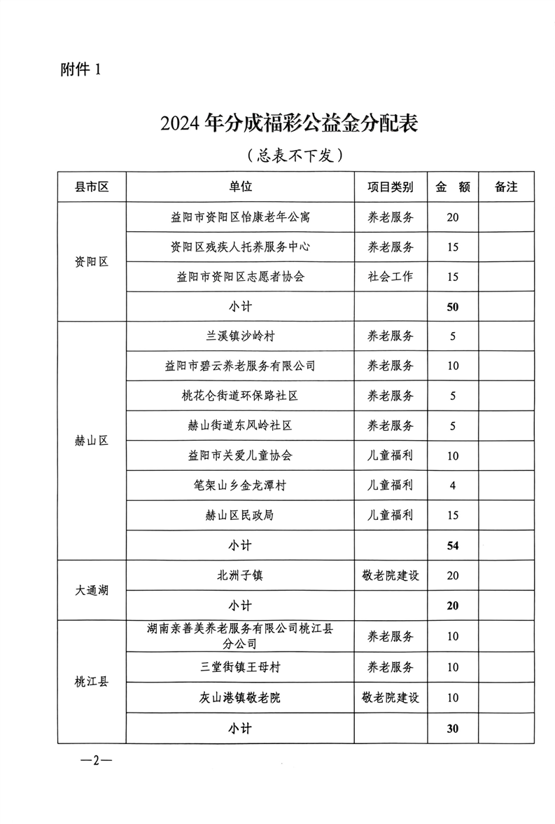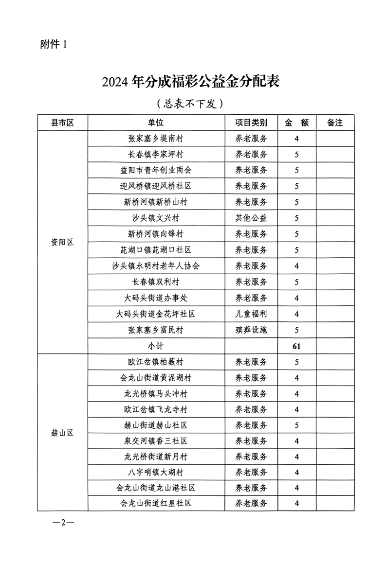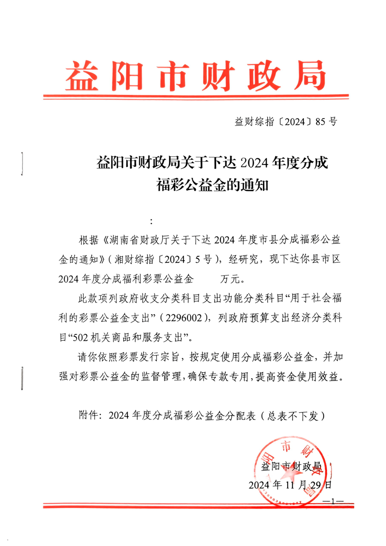益阳市财政局关于下达2024年度分成福彩公益金的通知(2)