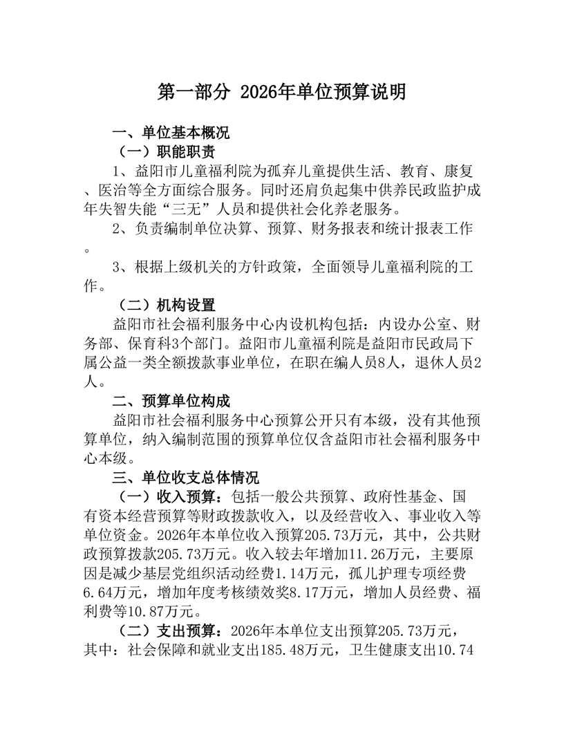益阳市社会福利服务中心_2026年部门预算公开说明