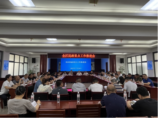 2025年7月24日,益阳市赫山区民政局召开民政重点工作推进会议,深入贯彻落实习近平总书记关于民生保障和乡村振兴的重要指示精神,全面部署社会救助、养老服务、脱贫攻坚与乡村振兴有效衔接等重点任务。副区长雷鹏出席会议并讲话,区民政局领导班子成员、各乡镇(街道)民政分管领导、社会事务办主任及民政局中层骨干近50人参加会议。