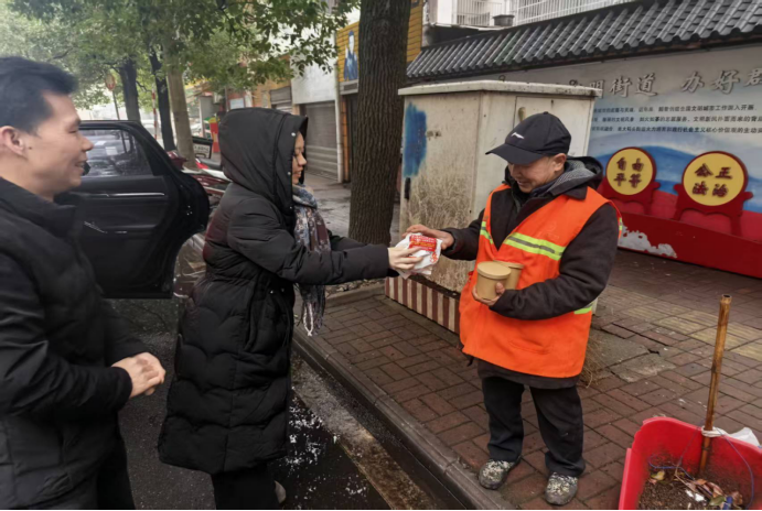 “一大早能喝到热粥,身上暖和了,干活也更有劲了,感谢政府的关心!”一位领取腊八粥的环卫工人笑着说道。