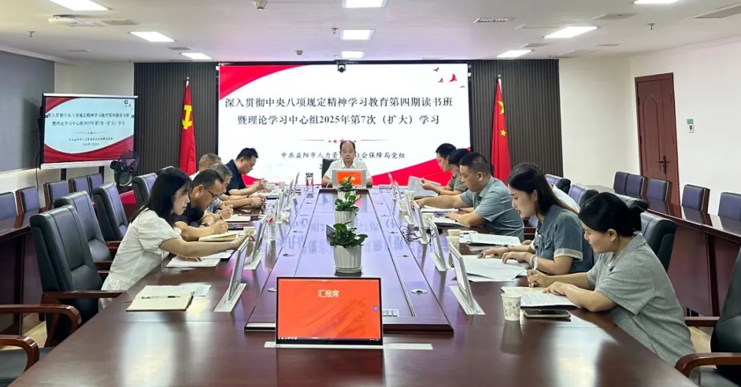 7月28日,市人力资源社会保障局举办深入贯彻中央八项规定精神学习教育第四期读书班暨党组理论学习中心组扩大会。局党组书记、局长肖凤南主持会议,局领导班子成员、其他市管干部及相关科室负责人参加学习。