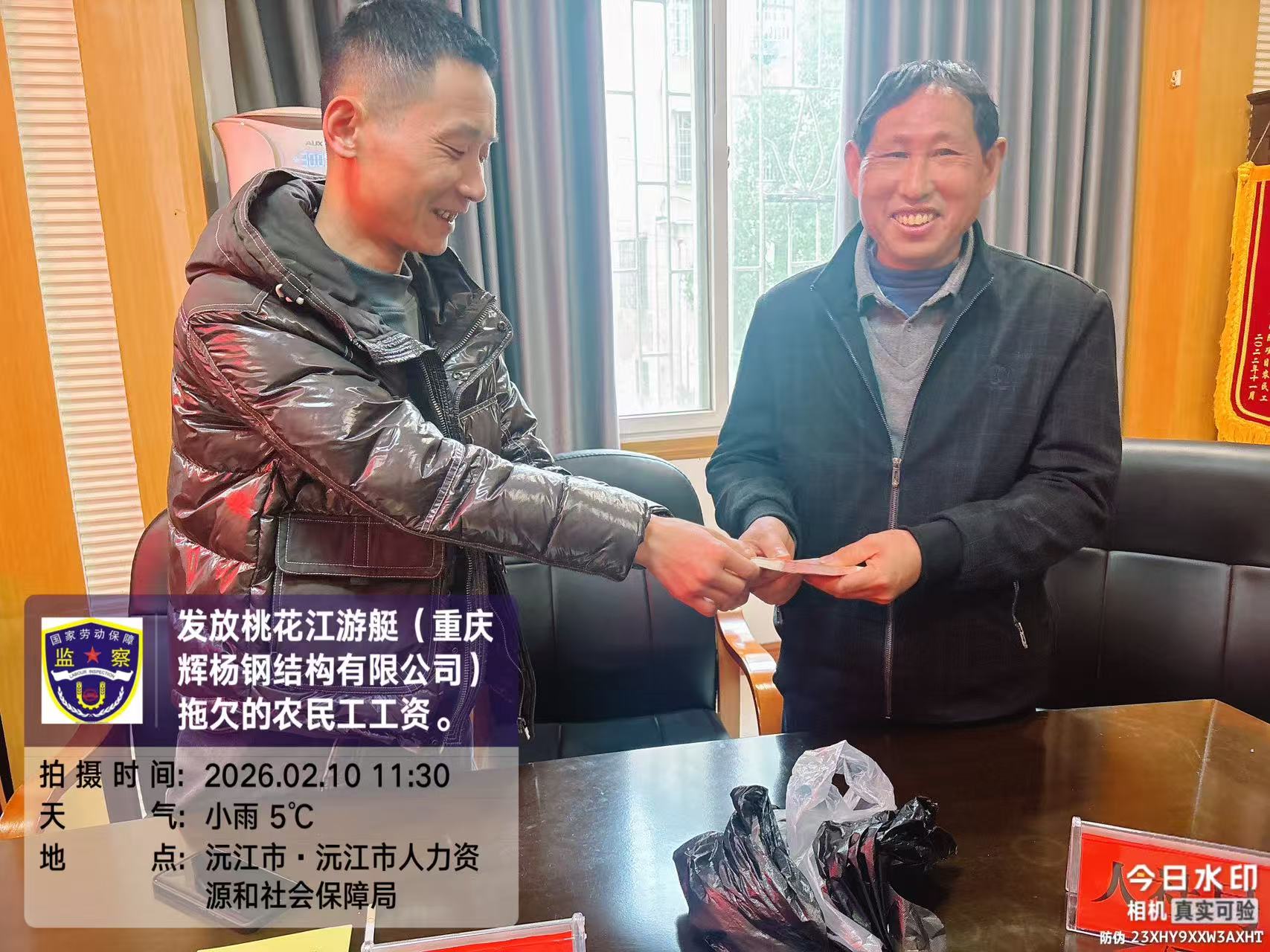 2月10日,经沅江市人力资源和社会保障局依法调处,重庆辉扬钢结构有限公司拖欠农民工工资问题圆满解决。
