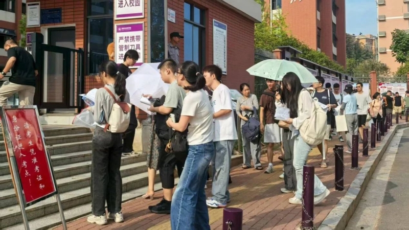 在安全防控方面,本次考试严格执行保密管理规定,纪检监察部门全程监督试卷运送、交接、保管等关键环节,做到“制度完善、严密合规、无缝对接”。同时,所有考场配备金属探测仪、信号屏蔽仪等防作弊设备,考点部署专业无线电监测力量,全方位筑牢考试安全防线,坚决杜绝泄密和舞弊行为。