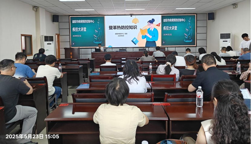 为提升登革热防控水平,强化传染病应急处置能力,5月23日,益阳市疾病预防控制中心举办2025年第五期“疾控大讲堂”活动。中心全体干职工及南华大学实习生近100人参与培训。