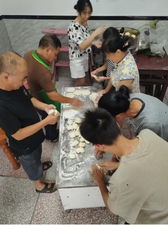 拍照环节结束后,另一处“战场”也热闹起来。工作队队员和志愿者们分工合作,揉面、调馅、包包子、蒸包子,干得井井有条。没多久,一个个白白胖胖、香喷喷的包子新鲜出炉。大家将热气腾腾的包子分装成袋,逐一分发到每位老人手中。“这包子真香,真好吃!”拿到包子的刘嗲嗲笑着说,眼里满是感动。据统计,本次活动共为老人们制作发放了1200多个包子,老人们吃得满意,心里也暖暖的。