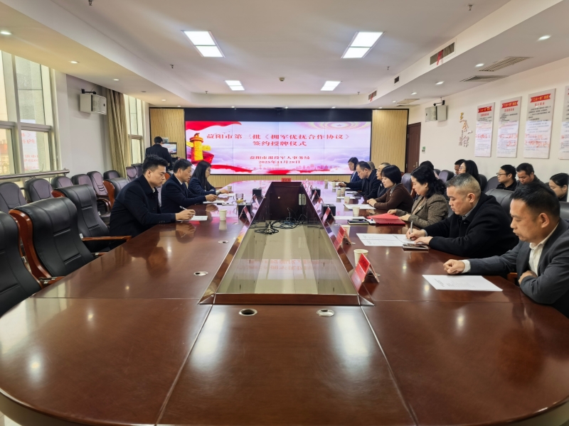11月28日,益阳市退役军人事务局举行第三批拥军优抚合作签约授牌仪式,与8家来自通讯、医疗、法律、体育及汽车维修等行业的企业签订优待合作协议,共同推出46项优待目录清单,推动社会化拥军工作迈向新阶段。