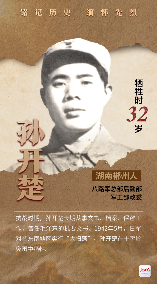 “埋骨何须桑梓地。”6月23日,孙清景告诉记者,因为没有找到尸骨,父亲在家乡一直没有墓碑。每年清明,孙清景回到郴州市苏仙区良田镇,为母亲扫墓时,都会深情悼念那位素未谋面却影响、激励他一生的英雄父亲。