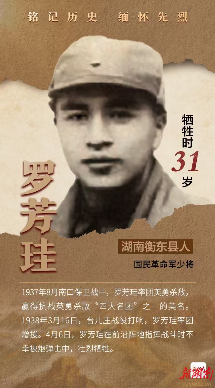 1938年,罗芳珪在台儿庄战役中壮烈牺牲,年仅31岁。87年过去,如今在英烈故土衡东县,罗芳珪抗日报国的故事仍广为传颂。