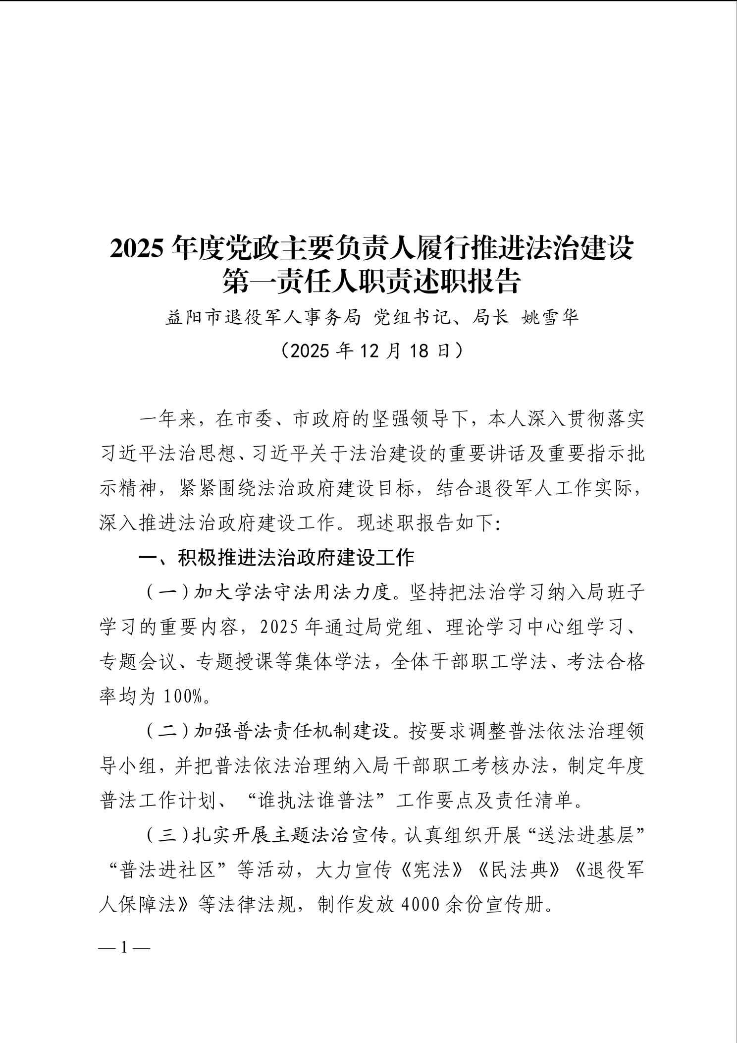 2025年度党政主要负责人履行推进法治建设第一责任人职责述职报告