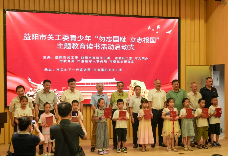 7月9日,益阳市青少年“勿忘国耻立志报国”主题教育读书活动启动式在位于清溪村的当代作家签名图书珍藏馆举行。市关工委主任彭建忠宣布活动正式全面启动。市关工委执行主任陈恒祥,副主任袁国军,市委组织部副部长、老干部局局长、市关工委副主任陈国圭,市退役军人事务局局长姚雪华,市关工委副主任杨克昌、李双建,市直机关工委副书记田立新,市委党史研究室副主任刘松山等出席仪式。市关心下一代宣讲团、“益阳UP”红色少年宣讲团成员,市直有关单位负责同志,青少年和家长等200多人参加仪式。