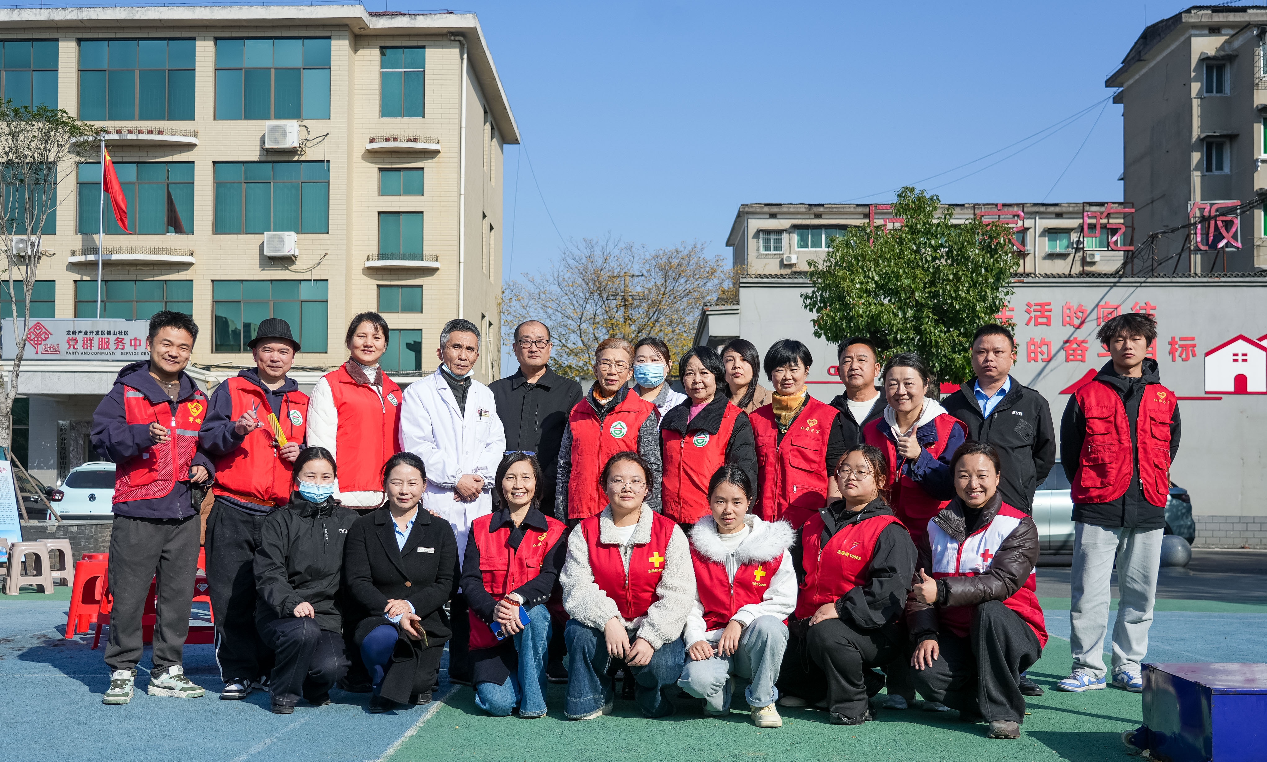 本次活动由益阳市合一社会工作服务中心主办,联合单位包括益阳市中医医院、益阳市红娘子军退役军人志愿者服务队等多家爱心单位。活动于上午9点准时启动,现场划分为义剪、义诊、护眼、科普、教学五大区域,为社区老年人提供多元化的免费服务。