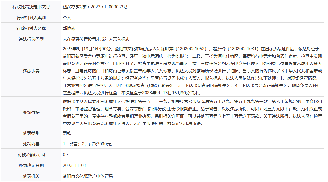 【行政处罚】郭艳林
