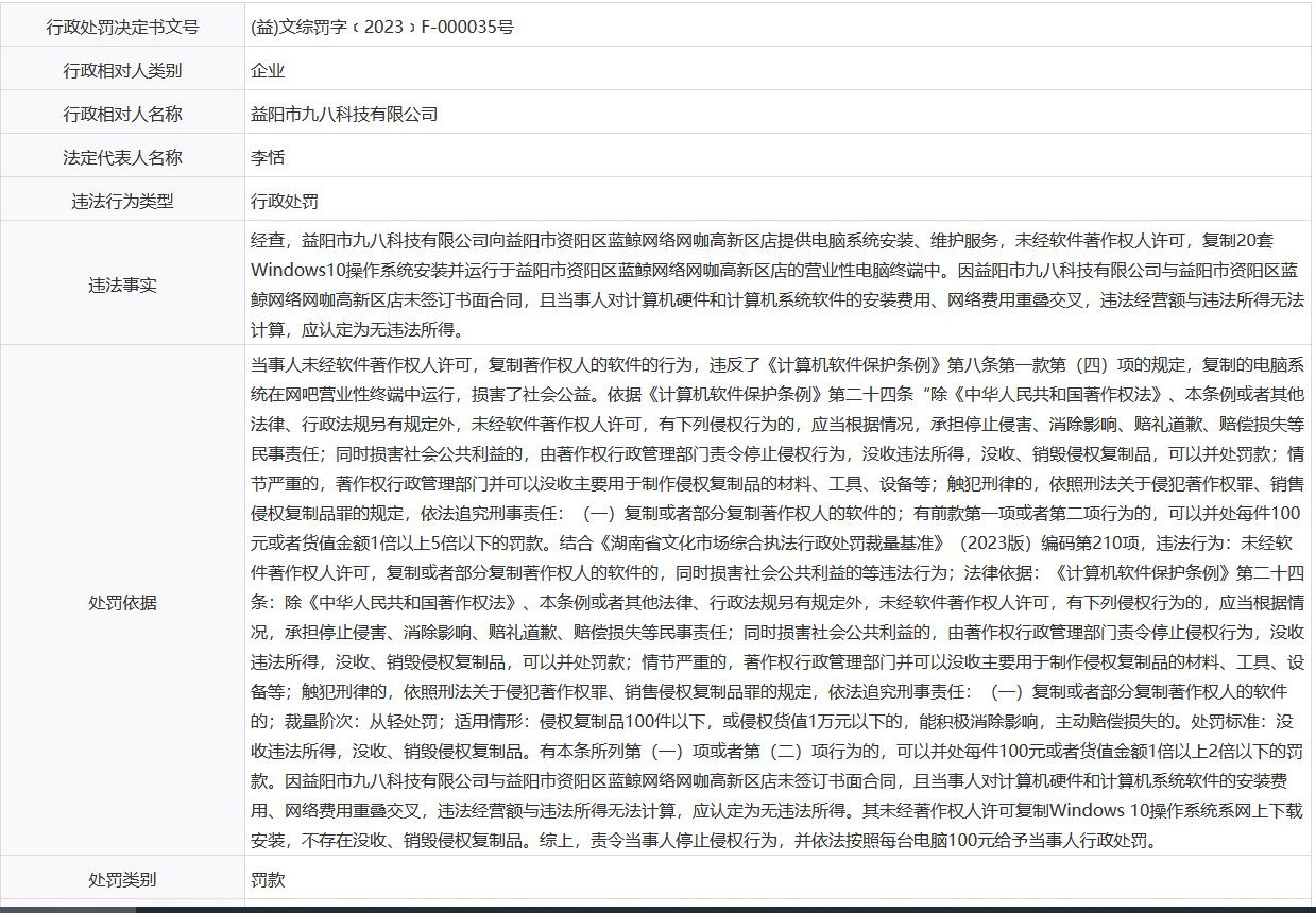 【行政处罚】益阳市九八科技有限公司