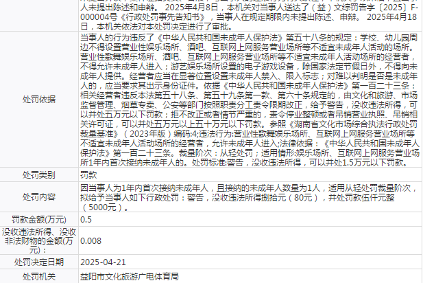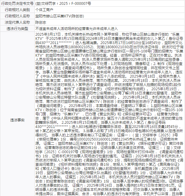 【行政处罚】益阳市赫山区采巢KTV(陈创志)