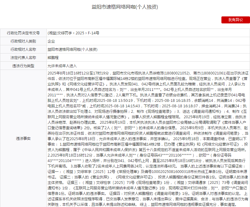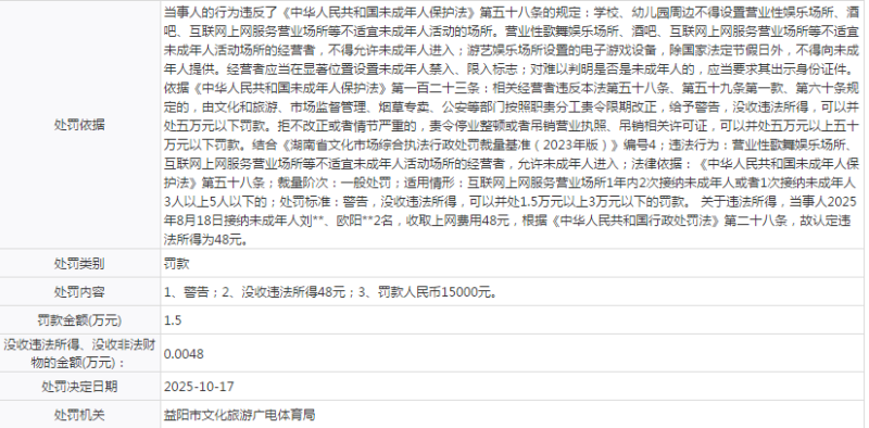 【行政处罚】益阳市速格网络网咖(个人独资)(2)