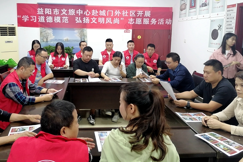 为积极弘扬社会主义核心价值观,进一步宣传道德模范先进事迹,9月23日,益阳市博物馆党支部、益阳市文化旅游产业发展服务中心党支部组织党员干部赴资阳区城门外社区开展“学习道德模范 弘扬文明风尚”志愿服务活动,扎实推进道德模范宣传进社区。