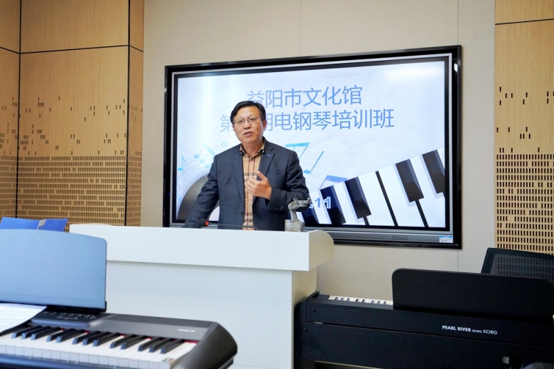 11月9日,益阳市文化馆第一期电钢琴公益培训班开班。本次培训由湖南城市学院音乐与舞蹈学院院长周勇教授、周晋主任及青年教师黄慧雅担任授课老师,课程学习用琴及教材均由益阳市阳光钢琴艺术学校免费提供。培训班分成人班和少儿班,为期两个月,共十六课时。同时制定科学规范的教程,以便让学员们能够尽快熟练掌握电钢琴技巧。