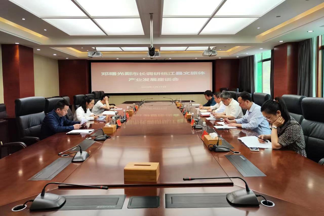 4月19日,益阳市人民政府副市长邓曙光带队赴桃江县调研文旅体产业发展相关工作,市人民政府副秘书长蔡湃,市文旅广体局党组书记、局长卜永强,桃江县人民政府副县长陈丹等领导参加调研。