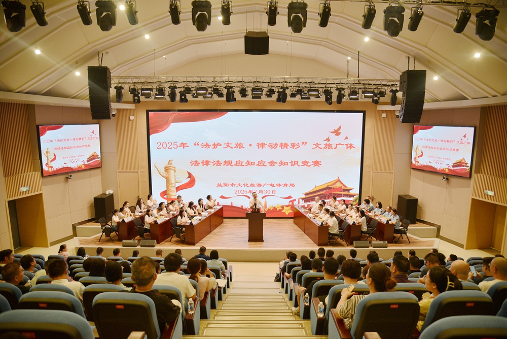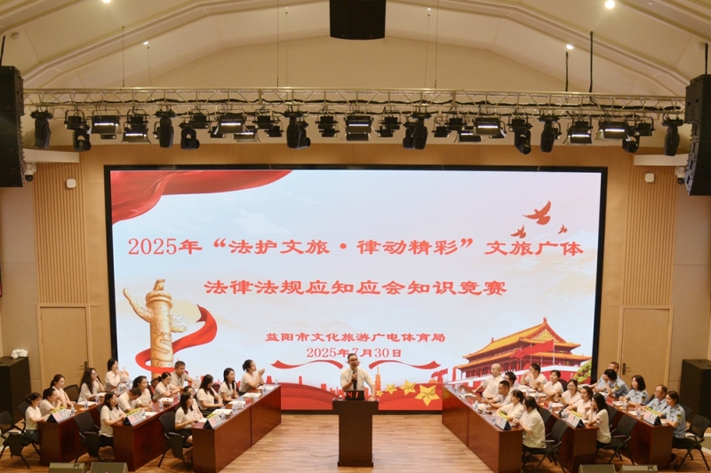 7月30日,益阳市文旅广体局举办2025年“法护文旅·律动精彩”法律法规应知应会知识竞赛,旨在持续深化“三个提升行动”,进一步强化干职工法治思维,提升系统依法行政能力。局在家领导班子成员出席活动,系统全体干职工现场观摩比赛。