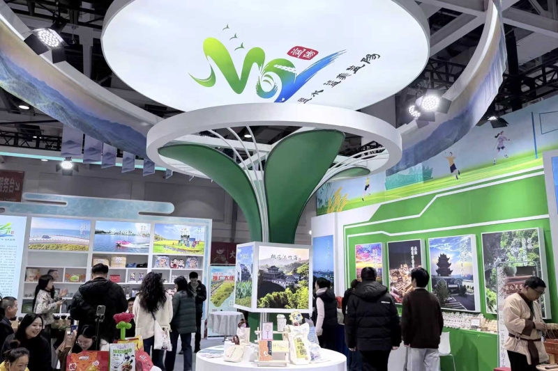 期间,益阳展馆、桃江展馆凭借特色鲜明的设计与丰富多元的展陈,成为现场人气焦点。益阳展馆紧扣生态与文旅融合主题,以绿色为主色调,搭配蓝白色调勾勒山水意境,巨型羽毛球造型装置打造视觉核心,醒目亮眼的“益美益阳”标识贯穿全场,巧妙融合益阳自然禀赋与文旅特色。馆内展示内容丰富多元,桃花江竹海、洞庭湖湿地等优质文旅资源通过实景图片、特色展品集中呈现,益阳特色美食、创意文创产品及乡村旅游新业态同步亮相,吸引大批参展商及市民游客驻足参观、咨询交流。