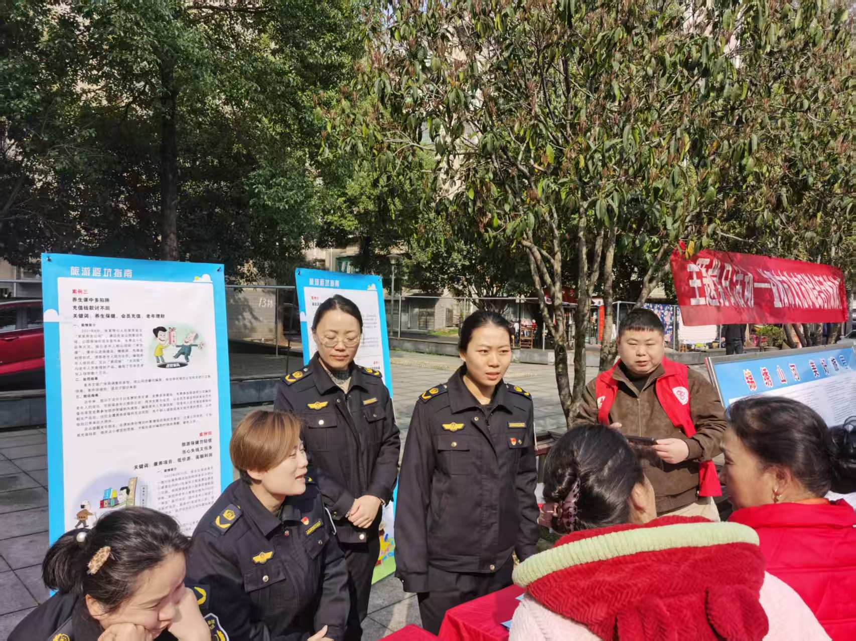活动现场,执法人员在社区广场设置普法宣传展台,聚焦“导游乱象、强制消费”,低价团陷阱等群众反映强烈的旅游消费痛点,向居民发放普法宣传资料,通过典型案例讲解、一对一答疑等形式,普及《旅游法》等法律法规,详解旅游维权途径与违规行为识别技巧,现场受理旅游消费投诉,切实为群众排忧解难。活动现场共发放宣传手册150余份,接待群众咨询80余人次,受理群众投诉1起。