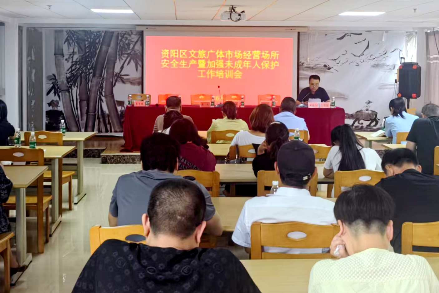 6月19日,资阳区组织召开文旅广体行业安全生产暨“护苗·2025”保护未成年人工作培训会议,旨在进一步强化文旅广体行业安全生产管理,提升未成年人保护工作水平,营造安全、健康、有序的行业环境。市文化市场综合行政执法支队、区委宣传部、市公安局资阳分局、区文旅广体局、区消防大队、区“扫黄打非”办等部门相关工作负责人,以及文旅广体行业经营场所负责人、工作人员等100余人参加此次培训。