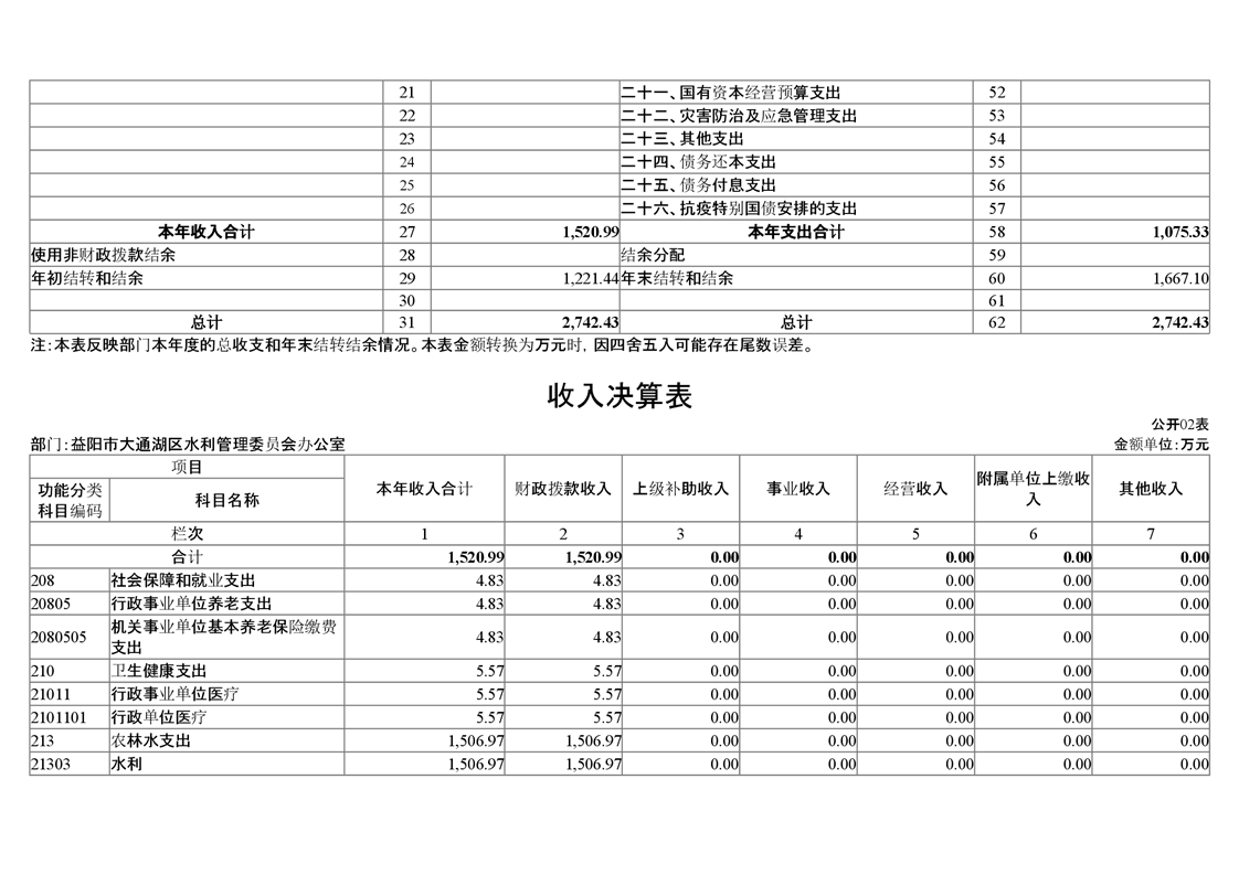 益阳市大通湖区水利管理委员会办公室2020年度部门决算公开说明