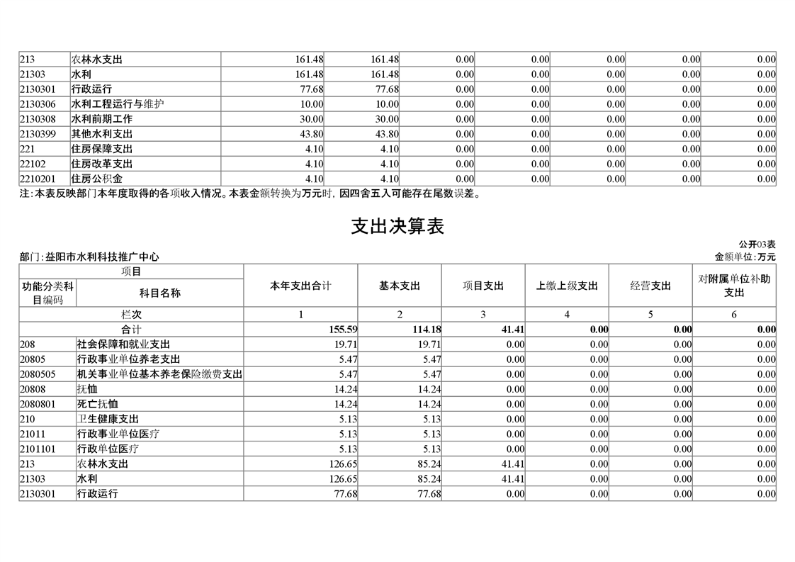 益阳市水利科技推广中心2020年度部门决算公开说明