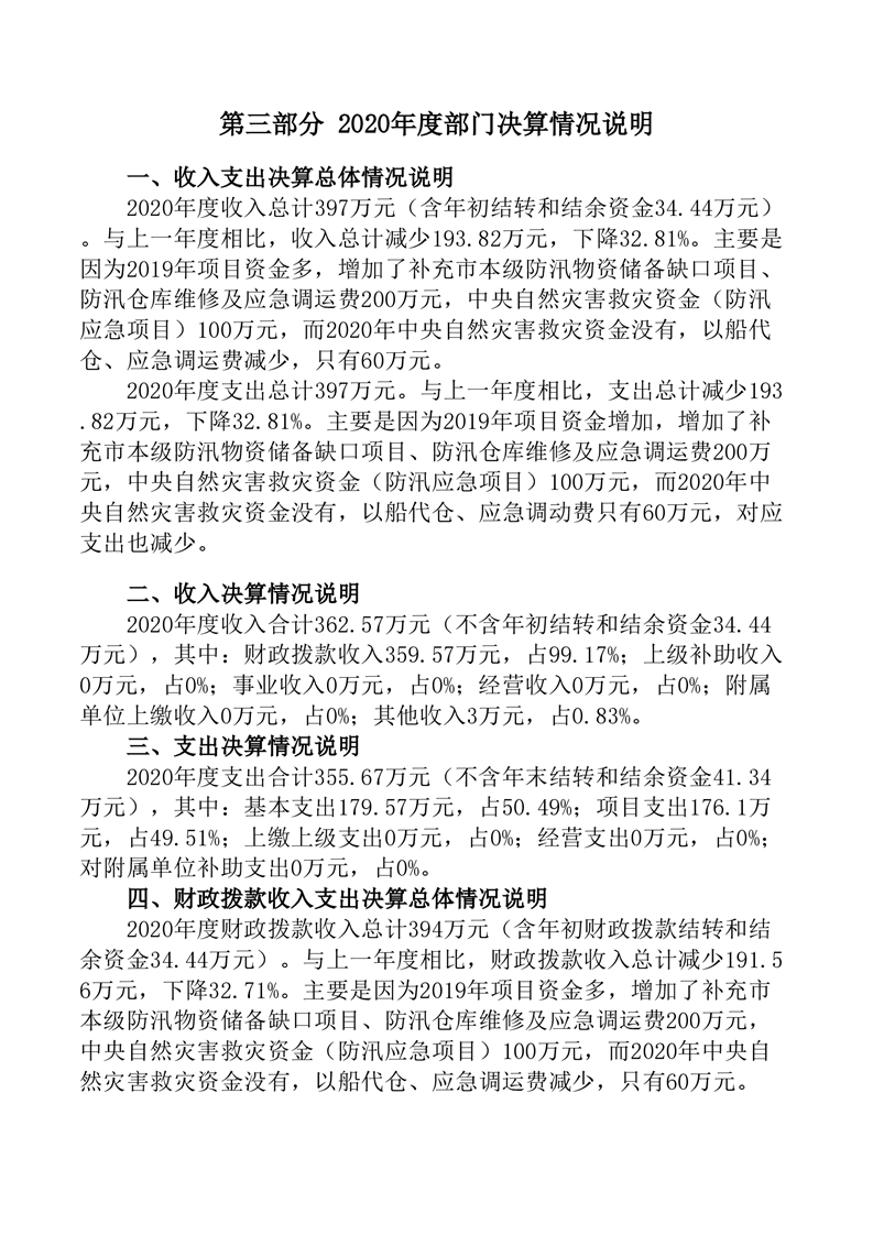 益阳市防汛抗旱物资储备中心2020年度部门决算公开说明