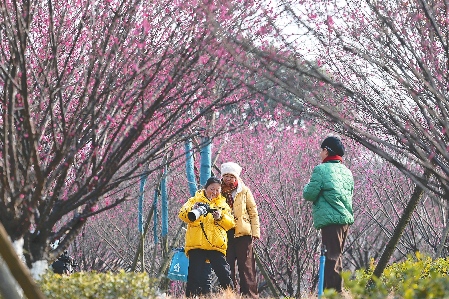 摄影爱好者在一园两中心拍摄梅花。黄云摄