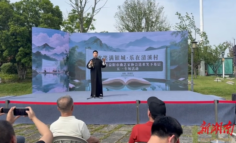 丰收广场,益阳曲艺家协会带来相声、快板、花鼓小调等。