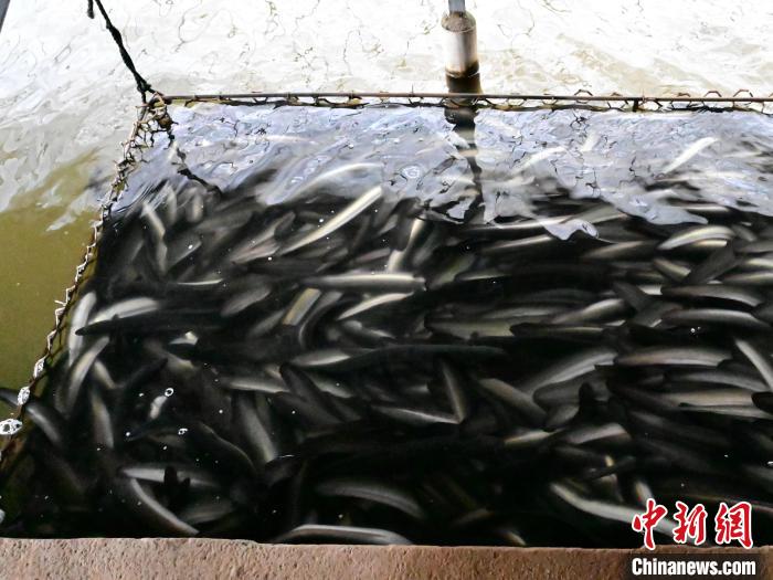鳗鱼正在食槽吃饵料。刘美玲摄
