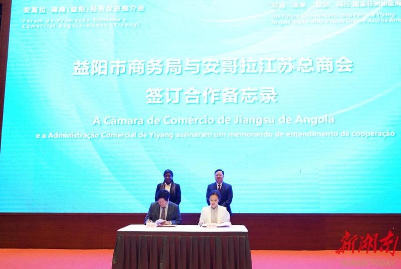 6月16日,益阳高新区举办安哥拉-湖南(益阳)经贸促进推介会,会上促成益阳市商务局与安哥拉江苏总商会签订合作备忘录,双方将积极推动安哥拉海鲜产品等优势产品进口以及益阳市食品加工、服装纺织、农机农化等优势产品出口。