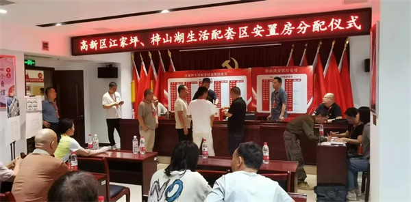 分配现场秩序井然。区安置建设专班牵头,联合区征拆与土储中心、朝阳街道办事处及房地产公司等单位,周密部署,明确分工,确保分配全程公平、公开、公正、有序。在工作人员引导下,安置居民提前有序到场。房地产公司及社区工作人员严格核验资料后,高效开展分配工作。选房公告宣读、序号抽取、房号选定、登记公示等环节衔接顺畅,居民积极配合。此次房源分配是江家坪生活配套区第二次、梓山湖生活配套区第三次安置房分配,有效加快了高新区实物安置进度,改善了安置居民居住条件。