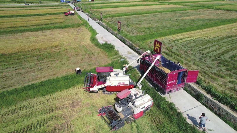 早稻收割现场。胡卫红摄