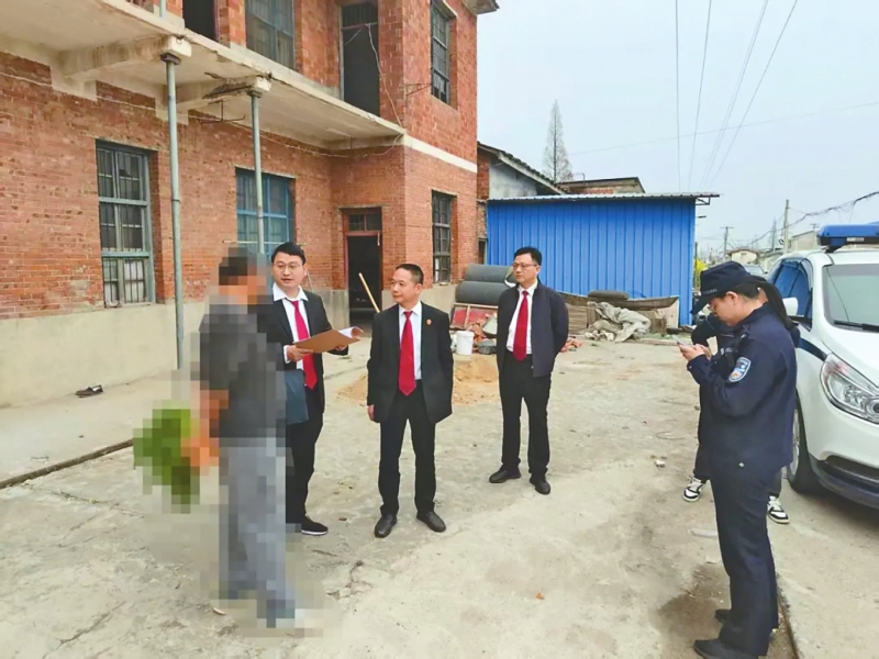 工作人员上门兑现胜诉权益。