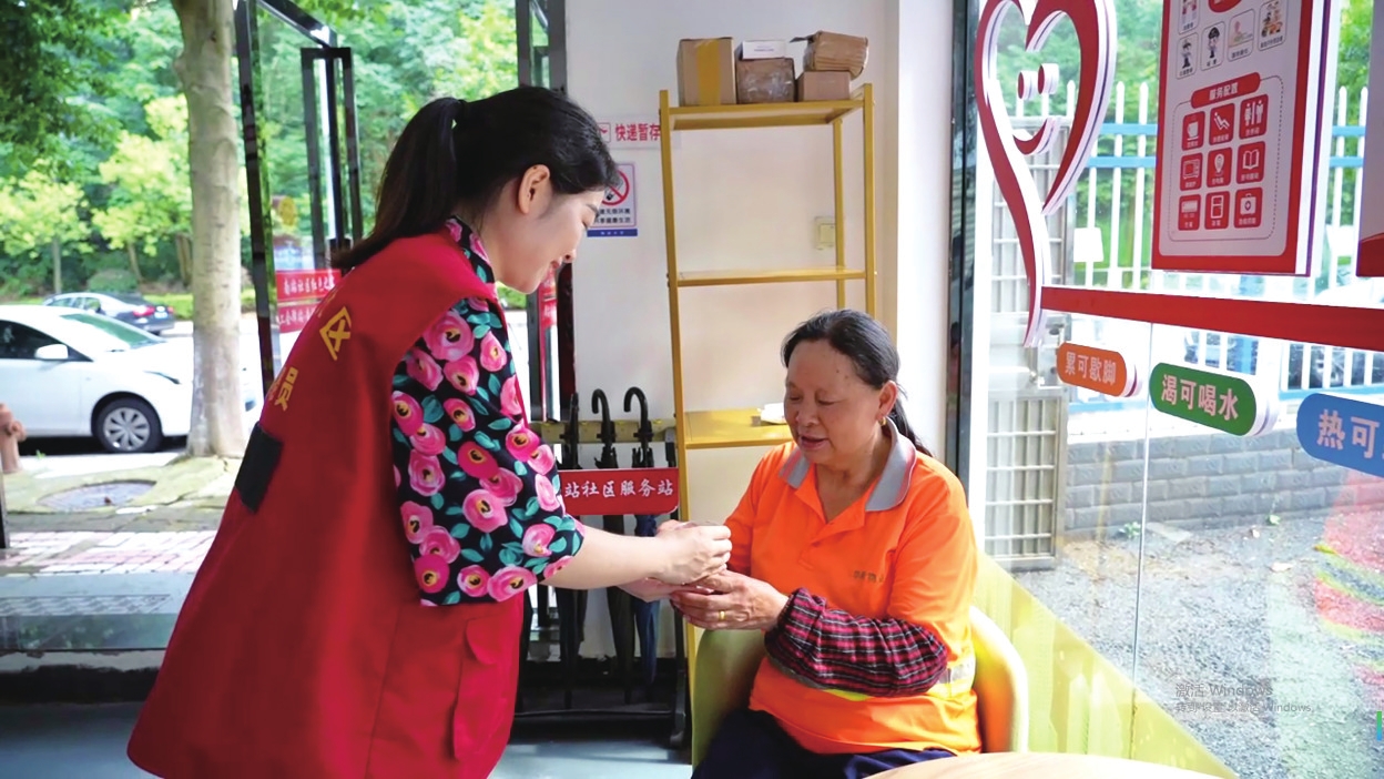 在保障城市清洁的同时保障户外工作人员的身体健康同样重要,遍布城区的各处驿站化身“清凉补给点”,可全天候提供饮水、降温服务。在工会驿站-南站社区服务站,环卫工人邓翠英正借着风扇纳凉休息,驿站内空调、冰箱、防暑医药箱等设施一应俱全,“冰水随时能喝,累了能歇脚,心里特别踏实。”社区工作人员卜亚琼介绍:“驿站使用率很高,负责这片的环卫工人每天都会来休息,我们也常来帮忙打理,大家一起为他们做好保障。”