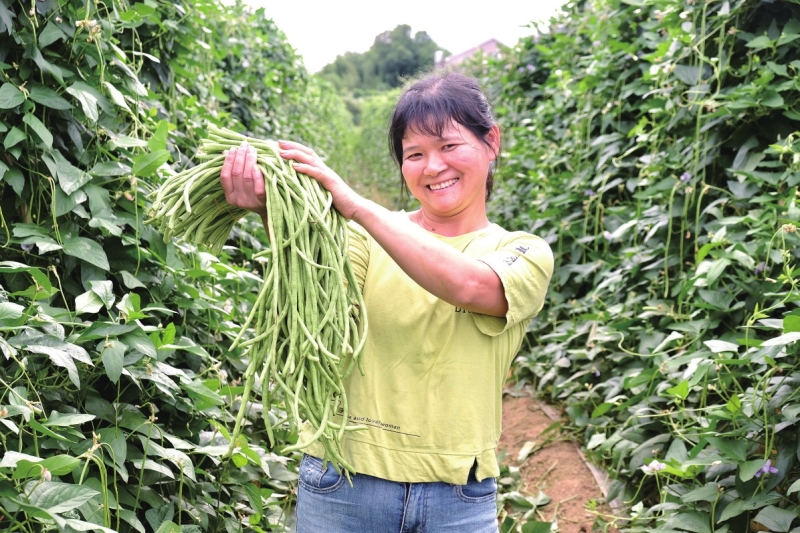 迎风桥镇部分土地偏旱带酸,不适合水稻等农作物生长。为拓宽村民增收渠道,今年来,迎风桥镇因地制宜,将豆角种植作为乡村振兴、群众增收的支柱产业。“豆角种植易管理且销路稳定,我们免费发放优质豆角种子给全镇8个村的种植户,并邀请专家全程提供技术指导,有效保证了豆角的种植效率和产量。”刘霖说。