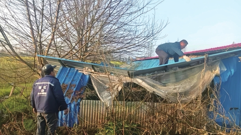 ——我市扎实推进乡村振兴资金使用监管突出问题专项整治工作综述工作人员拆除鸭棚垮塌部分。陈徐文倩摄